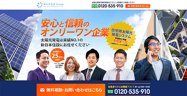 の新日本住設株式会社 へ。太陽光発電の実績No.1位(月間スマートハウス調べ)。【太陽光マイスター】